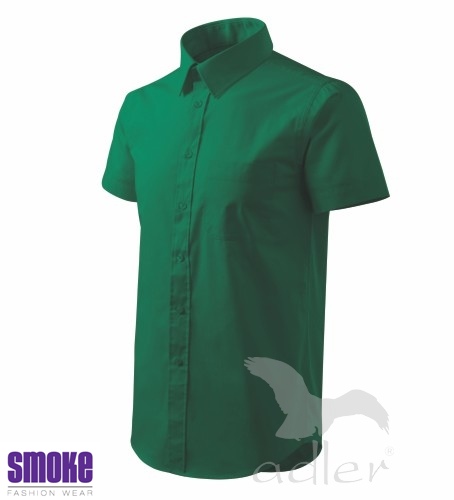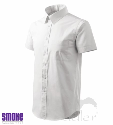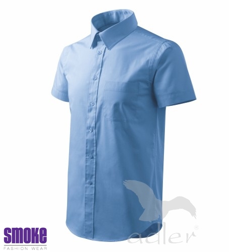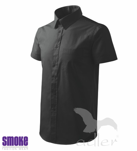 Kvalitní pánská košile s krátkým rukávem ze splývavého savého materiálu. Zadní díl tvarovaný dvojitým sedlem a složenými záhyby pro větší volnost. Na předním díle nakládaná kapsa, zdvojené průramkové švy. Přední kraj začištěný légou, zapínání na knoflíčky, dvojdílný košilový límec. Tvarovaný dolní kraj.