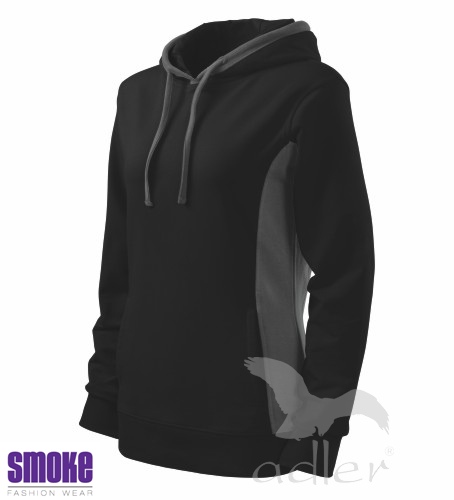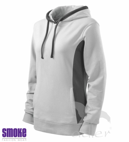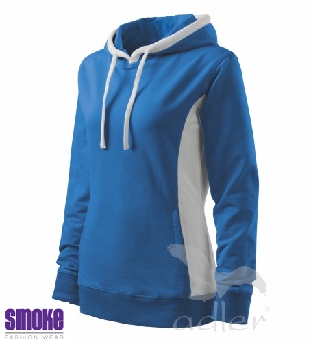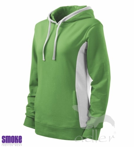 Trendová dámská mikina se zatahovatelnou kapucí a kapsami umístěnými v členícím švu. Lem kapuce, tkaničky a boční díly mikiny jsou v kontrastní barvě. Vnitřní strana výplňová pletenina, spodní lem a manžety rukávů z žebrového úpletu s přídavkem elastanu. Vhodná pro kvalitní reklamní potisk pomocí transferu.