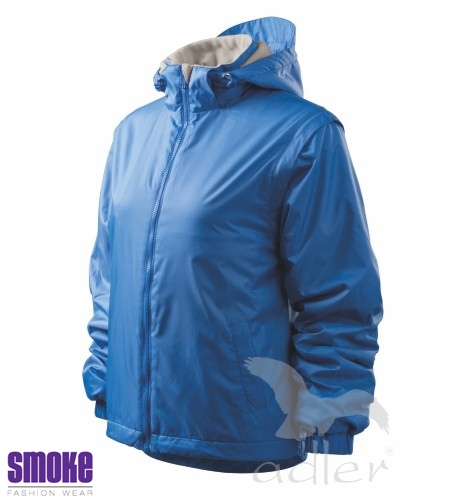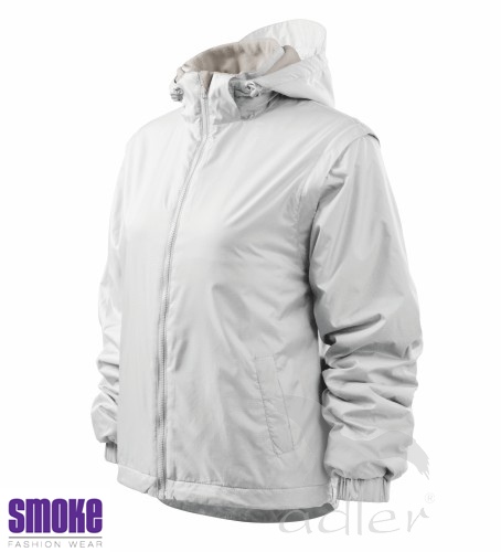 Dámská bunda 2 v 1 s odepínacími rukávy a kapucí. Odepínatelná kapuce s možností stažení elastickou šňůrkou. Vypasovaný střih zvýrazňující dámskou siluetu. Dvě přední lištové kapsy. Rukávy zakončeny pružnou manžetou. Dvě vnitřní náprsní kapsy (menší pro mobilní telefon uzavíratelná suchým zipem, větší na zip). Prodloužený zadní díl. Snadný přístup pro potisk a výšivku pomocí otvoru na zip v bočním švu podšívky. Vhodná pro reklamní potisk