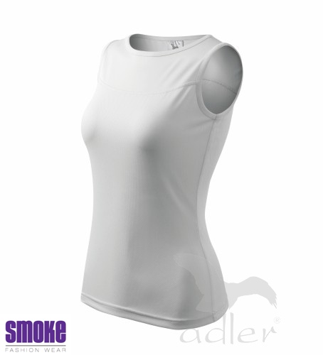 Dámský top s širšími ramínky a slušivým lodičkovým výstřihem. Volný průkrčník a průramky začištěny lemem ze základního materiálu. Členicí švy na předním i zadním díle zdobí top v sedlové části, horní část topu je v reverzním provedení. Mírně projmutý střih s bočními švy. Díky použitému tvarovanému vláknu vhodné pro sport i celodenní nošení. Vhodné pro reklamní potisk.