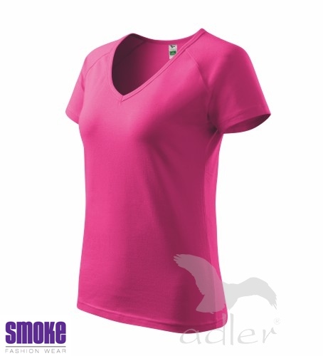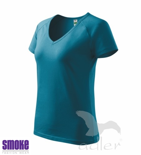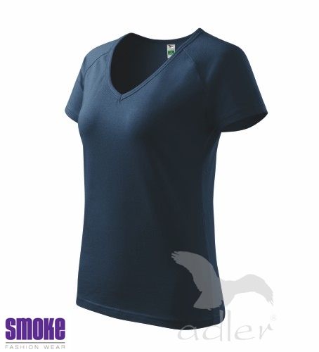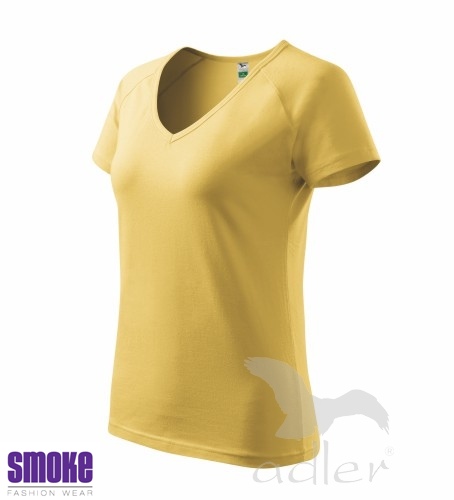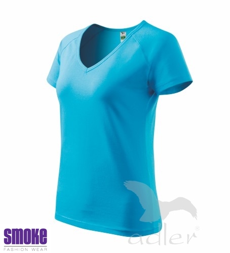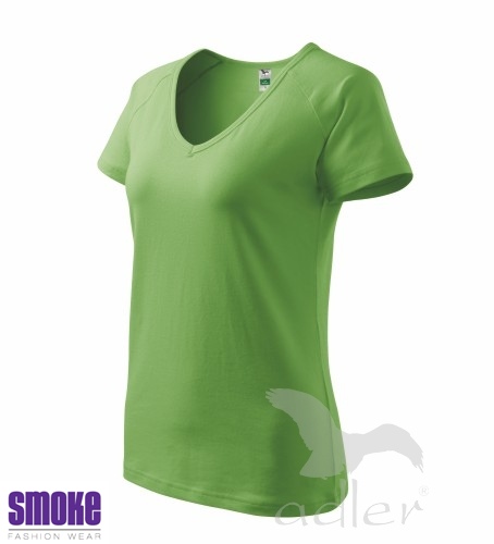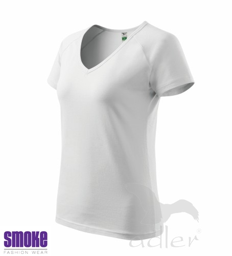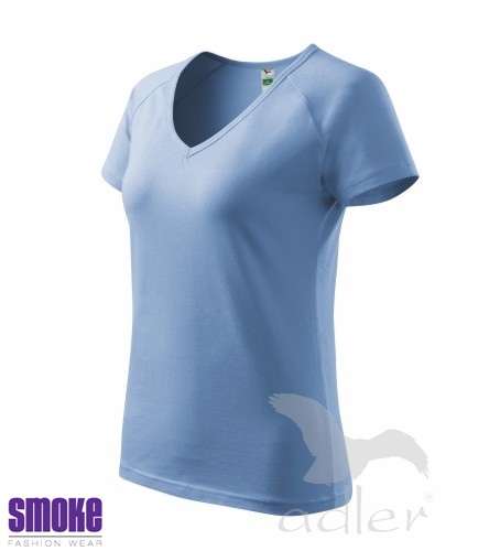 Kvalitní dámské triko vyšší gramáže. Průkrčník ve tvaru V. Krátký raglánový rukáv. Projmutý střih zvýrazňující dámskou siluetu. Díky přídavku elastanu drží tvar. Vhodné pro reklamní potisk.
