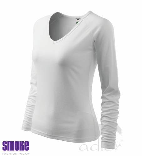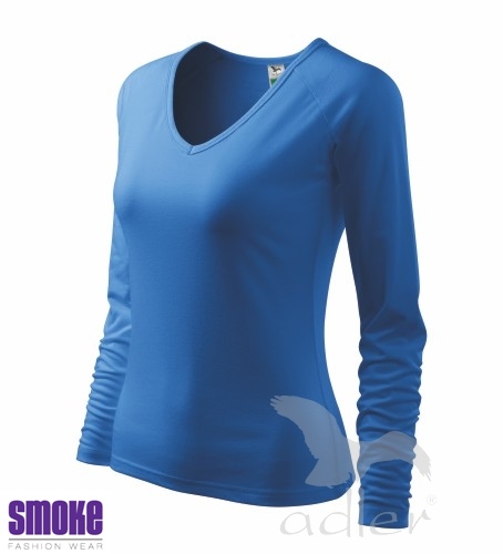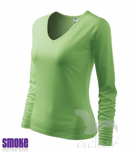Kvalitní dámské triko vyšší gramáže. Průkrčník ve tvaru V. Dlouhý raglánový rukáv. Projmutý střih zvýrazňující dámskou siluetu. Díky přídavku elastanu drží tvar. Vhodné pro reklamní potisk.