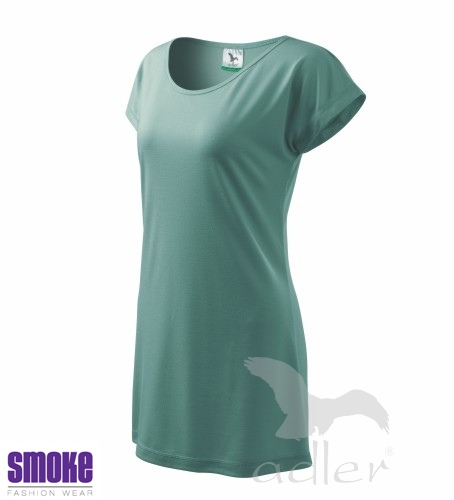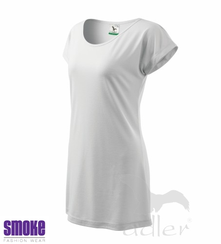 Splývavé dámské triko. Volný střih s kimonovým rukávem. Oválný výstřih začištěný lemem ze základního materiálu. Délka trika umožňuje různé způsoby nošení. Doporučujeme tričko sušit ve vodorovné poloze z důvodu použitého materiálu. Vhodné pro rekalmní potisk.
