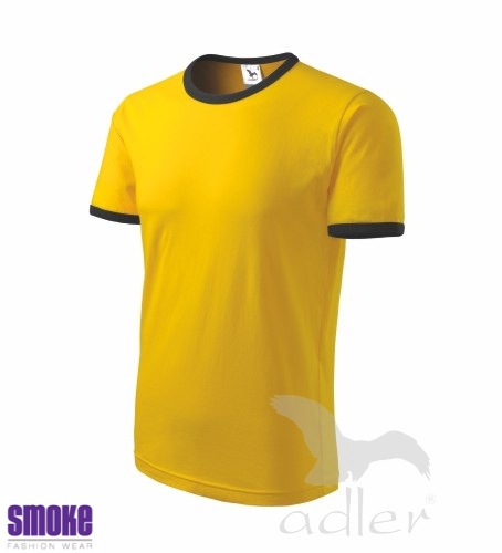 Kvalitní unisexové triko vysoké gramáže vhodné pro potisk a výšivku. Módní úzký lem průkrčníku a rukávů z žebrového úpletu je v kontrastní barvě. Střih s bočními švy. Nahrazuje původní produkty 115, 116 a 117 Triko Duo Sandwich. Vhodné pro reklamní potisk.