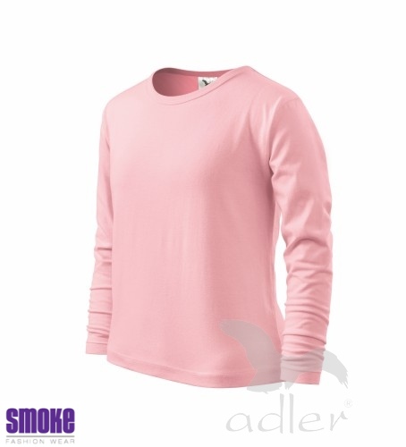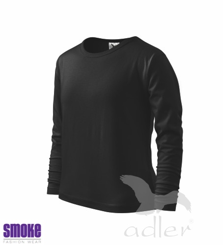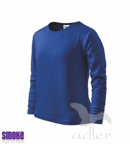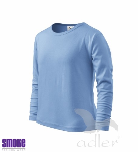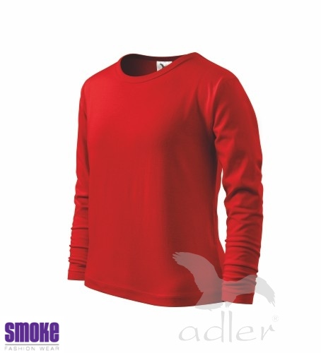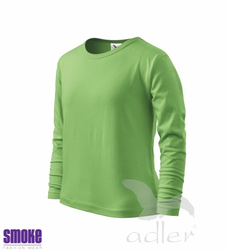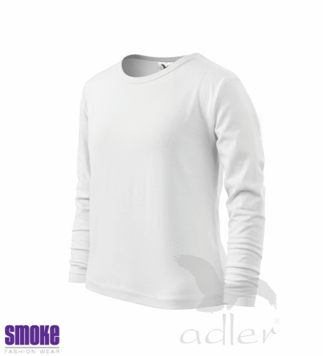 Dětské triko s dlouhým rukávem z hladkého úpletu. V průkrčníku úzký lem v barvě trika. Vhodné pro reklamní potisk.